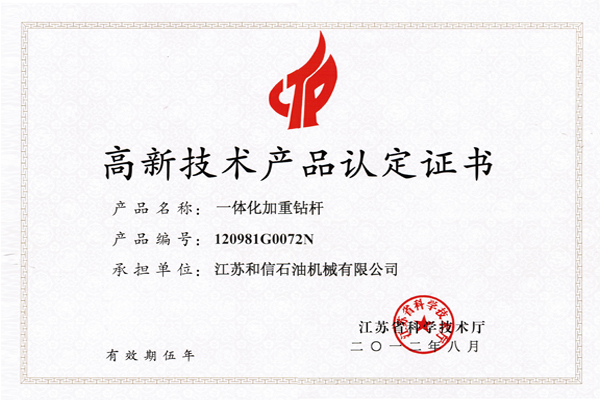 产品名称: 一体化加重钻杆证书 |
