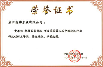 产品名称: 第三届中国地板行业科技创新三等奖 |