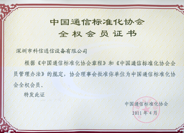 产品名称: 中国通信标准化协会全权会员证书 |