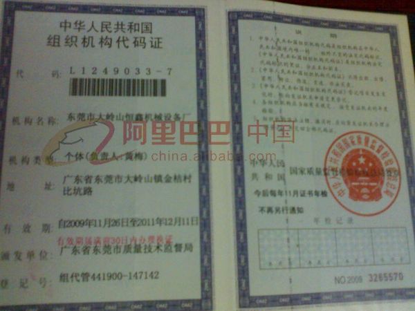 组织机构代码证 发布时间: 2017-07-11 21:44:52 发布网站: 中国园林招标网