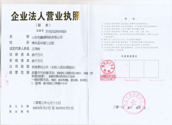 | 山东宏鑫源钢板有限公司 |