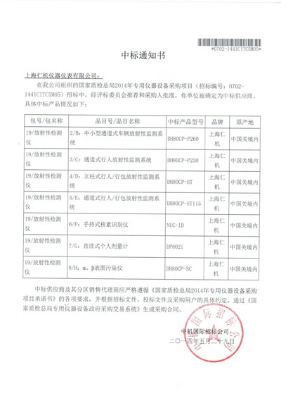2014 商检中标通知书